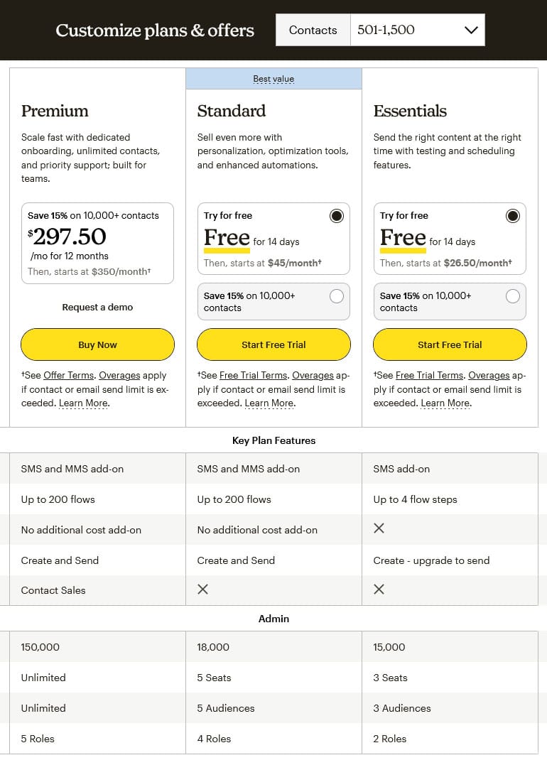 Their current most popular plan – Marketing Automation Plan – costs $59/mth for up to 1,000 subscribers whereas the older Pro Plan used to cost $59/mth for up to 5,000 subscribers.